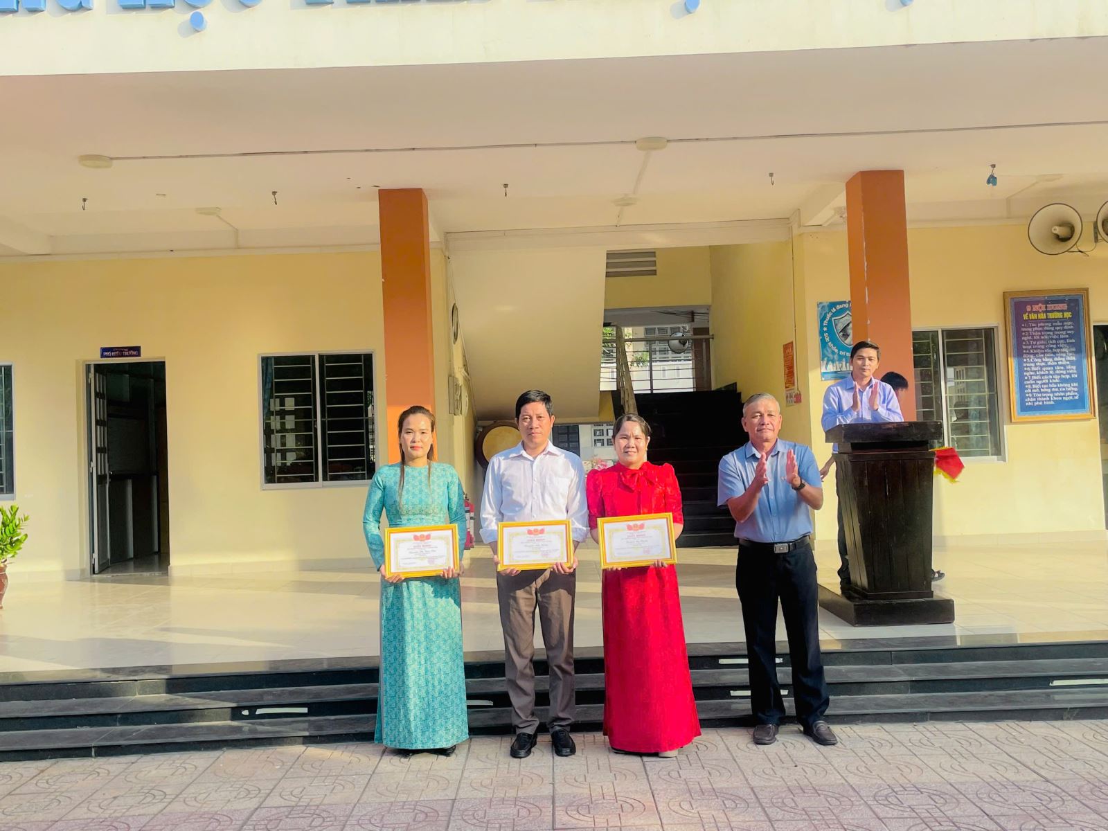 Hình ảnh buổi Lễ sơ kết Học Kỳ I năm học 2025-2026 của trường THCS&THPT Mỹ Bình